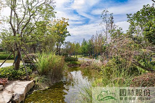 運(yùn)河灣公園是一個(gè)以海綿城市理念打造的景觀公園,從旱溪、濕塘等形式豐富的海綿設(shè)施,到各類透水鋪裝材料的應(yīng)用,海綿城市理念貫穿于公園建設(shè)的各個(gè)環(huán)節(jié)。