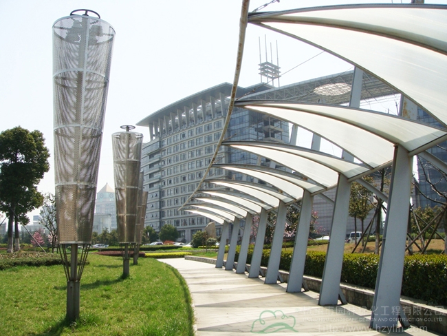 海寧市海洲廣場北區(qū)Ⅱ標(biāo)段(綠化工程)位于海寧市行政中心內(nèi),區(qū)域范圍由海洲路、高家橋河、丁橋港一路兩河圍成,綠化用地123000平方米。該工程為綜合性園林工程,分為17個分部,包括園路、林蔭停車場、人文廣場、林蔭廣場、親水平臺、浮雕、噴泉、景觀亭、景觀廊、休息廊、網(wǎng)球場、小方塊道路、假山、園形花廊、鋪裝停車場、綠化工程、給排水工程及電氣安裝等。
