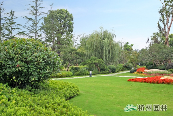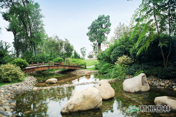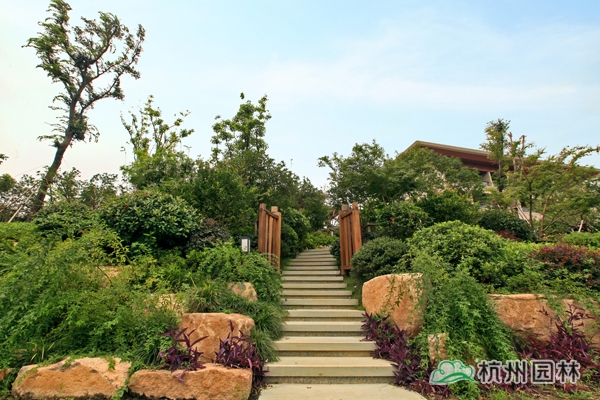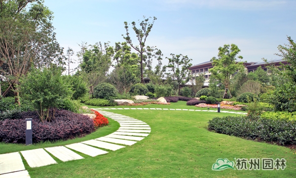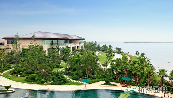 該工程位于江蘇吳江松陵鎮(zhèn)濱湖路三船河大橋附近,內(nèi)容包括綠化種植、硬質(zhì)鋪裝、園路施工、景觀小品工程、樁基工程、景觀照明系統(tǒng)等。在植物配置上,將中國園林的自然式手法與英國園林的自然式風(fēng)格相結(jié)合,營造出亦古亦今、中西混搭,整體恢宏大氣、局部婉約精致的高端酒店景觀。該工程榮獲“2014年度中國優(yōu)秀園林綠化工程大金獎(jiǎng)”。
