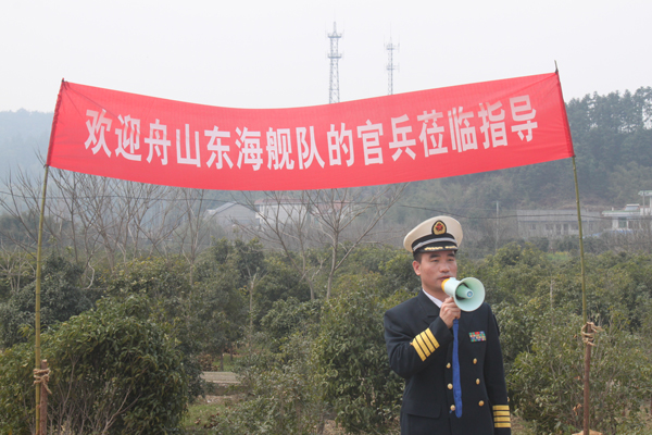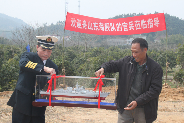 3月31日上午12點(diǎn),舟山東海艦隊(duì)某支隊(duì)官兵們的車(chē)輛到達(dá)泉口苗木基地,現(xiàn)場(chǎng)舉行了熱烈的歡迎儀式。儀式由杭州市園林綠化工程有限公司總經(jīng)理張炎良主持,杭州市林水局副局長(zhǎng)楊文鐘代表杭州市政府對(duì)官兵們的到來(lái)表示了熱烈的歡迎,并發(fā)表了熱情洋溢的致辭;舟山東海艦隊(duì)某支隊(duì)呂政委代表官兵們致答謝辭,并贈(zèng)送給楊副局長(zhǎng)一個(gè)海軍軍艦?zāi)P?,表達(dá)他們對(duì)杭州市政府送樹(shù)行為的感謝。