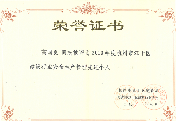 會議旨在總結(jié)經(jīng)驗,表彰先進(jìn),現(xiàn)場宣讀了一批在2010年為江干區(qū)經(jīng)濟(jì)發(fā)展做出突出貢獻(xiàn)的建筑企業(yè)和個人名單,并頒發(fā)了獎牌和證書。其中,公司被評為“2010年度杭州市江干區(qū)城市園林綠化優(yōu)秀企業(yè)”,成為上榜的七家企業(yè)之一;公司工程總監(jiān)、市政分公司副總經(jīng)理高國良被評為“2010年度杭州市江干區(qū)建筑行業(yè)安全生產(chǎn)管理先進(jìn)個人”。