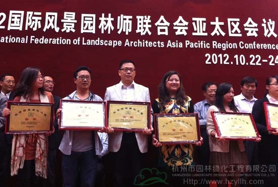 2012年度中國風(fēng)景園林學(xué)會“優(yōu)秀園林工程獎”共頒出獲獎項目195項,其中,“優(yōu)秀園林綠化工程獎”185項,“優(yōu)秀園林古建工程獎”10項。杭州市園林綠化工程有限公司承建的中國鐵建?國際城(杭州)示范區(qū)園林綠化工程和深圳市國道205深圳段改建工程景觀綠化工程G5402標(biāo)段雙雙榮獲金獎。