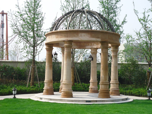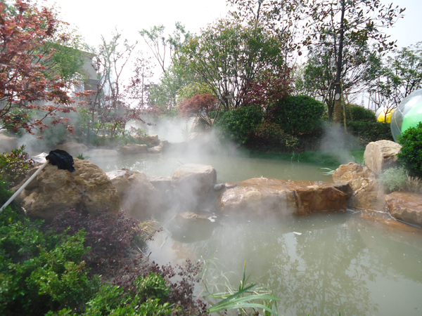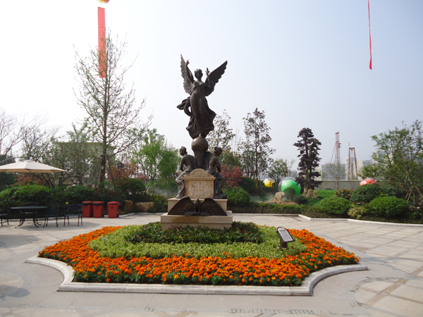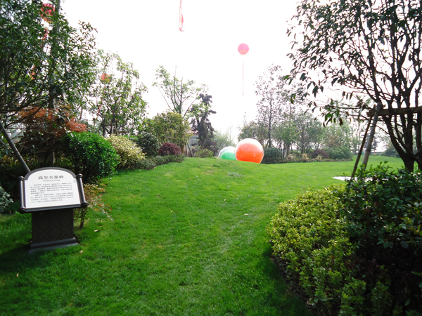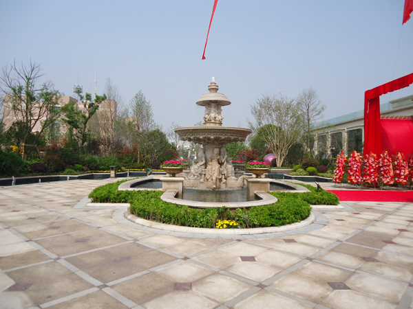 更引人注目的,還有銷售展示中心前面的雕塑噴泉,該噴泉運(yùn)用花崗巖整石雕刻拼接而成,工藝極其復(fù)雜,自上而下不斷灑落的水花,營造出一片清涼;無以復(fù)加的鏤空鐵藝圓頂繁復(fù)花紋和拱門的石材立面裝飾的皇家景觀亭,精致中透露出大氣;潺潺溪流、霧氣繚繞的人工溪澗,如夢似幻;大面積的高爾夫果嶺草坪蜿蜒起伏,華貴雍容……