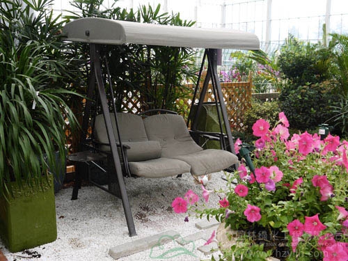庭院一角的布藝秋千
