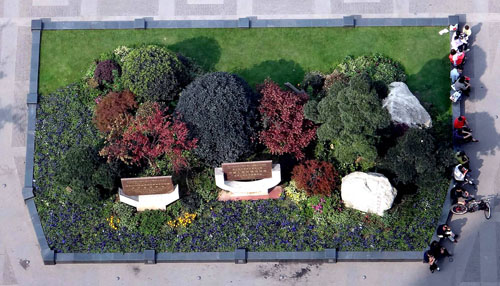 據(jù)李壽仁介紹,保留下來(lái)的大樹(shù)主要有兩種處理手法:像天竺桂、黃葛樹(shù)等幾十年的老樹(shù),在周?chē)罱举|(zhì)平臺(tái),既可以保護(hù)大樹(shù),又可供游人休息;一些香樟、桂花、銀杏等,則用森林綠整石圍邊,搭配草皮、三色堇、球類(lèi)、日本紅楓等植物,采用花境的布置手法,建成一個(gè)個(gè)面積大小不一的花壇,營(yíng)造出四時(shí)風(fēng)光各不同的江南園林意境。而平滑、細(xì)膩的森林綠整石,既是景觀的一部分,又是漂亮的坐凳,兼顧了景觀與實(shí)用的功能。