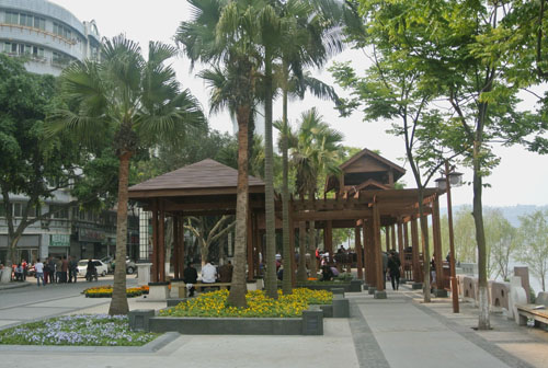 經(jīng)過(guò)近半年的不懈努力,如今,這里的景觀效果已初見(jiàn)成效,生態(tài)自然的園林美景,濃郁厚重的人文氣息,使這里再次成為酒城瀘州的一處標(biāo)志性景觀,成為廣大市民的一處休閑樂(lè)園。站在高處的建筑上往下看,新建成的館驛嘴廣場(chǎng)猶如一艘動(dòng)感十足的航船,迎風(fēng)破浪,向著江心直行而去;而廣場(chǎng)上無(wú)數(shù)的游人,則如船上的乘客,悠閑愜意地欣賞著江中的美景。