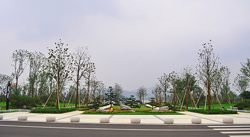 云龍湖珠山景區(qū)景觀綠化工程總占地面積80公頃,全長3.6公里,施工面積63萬余平米,施工內(nèi)容主要包括土方造型、綠化種植、廣場園路鋪裝、道教主題廣場、沉水廊道、木棧道、景石營造、古建筑等。設(shè)計主題突出"徐州新天地和珠山新印象",總體風(fēng)格體現(xiàn)"人文、生態(tài)、活力",共分為濱湖主入口廣場區(qū)、水杉林游覽區(qū)、濱湖休閑景觀區(qū)、水生植物游覽區(qū)等9個功能區(qū)及觀魚沉水廊道、道教主題廣場、水杉林大道、沿湖木質(zhì)棧道等多個景觀節(jié)點。工程施工共分三個標段,其中,杭州市園林綠化股份有限公司承建的是二標段。