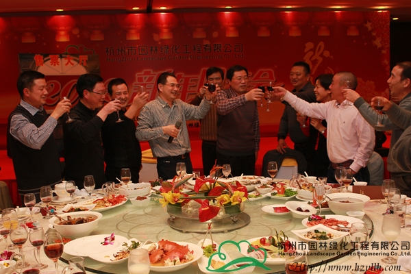 表彰儀式結(jié)束后,董事長吳光洪發(fā)表了新年致詞。吳董首先對各位領(lǐng)導(dǎo)和嘉賓的到來表示了熱烈歡迎;然后與大家共同回望了企業(yè)2011年所取得的成就,并對2012年的發(fā)展進行了規(guī)劃和展望,他感謝大家對杭州園林一路的支持與關(guān)注,希望未來仍能與大家一起攜手前行;最后,吳董舉起手中的酒杯,與大家一起為新的一年干杯,并宣布晚宴正式開始。