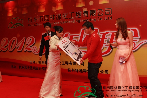 隨著晚宴的開始,精彩的節(jié)目表演也拉開了序幕。一曲熱情激昂的鼓樂《中國龍》,營造出了龍年吉祥喜慶的節(jié)日氛圍,隨后,唯美的獨舞表演、深情的情歌對唱、優(yōu)美的葫蘆絲吹唱,功夫茶道、詩詞朗誦、搞笑小品……一個又一個精彩節(jié)目,將現(xiàn)場的氣氛一次次推向高潮。而期間最令人期待的,是現(xiàn)場的抽獎環(huán)節(jié),一等獎的42寸高清液晶電視機、二等獎的皇冠寢室羽絨被、三等獎的博洋家紡四件套,豐厚的獎品讓每個人都期待著幸運的降臨,隨著一組組數(shù)字的公布,抽到獎的人一個個歡喜雀躍,興高采烈地領(lǐng)走了獎品,現(xiàn)場成為一片歡樂的海洋。最后,投標(biāo)中心的一曲《明天會更好》,傳達了所有人對2012年的美好期待和祝愿,也預(yù)示著杭州市園林綠化工程有限公司2012年新春團拜會的圓滿成功!