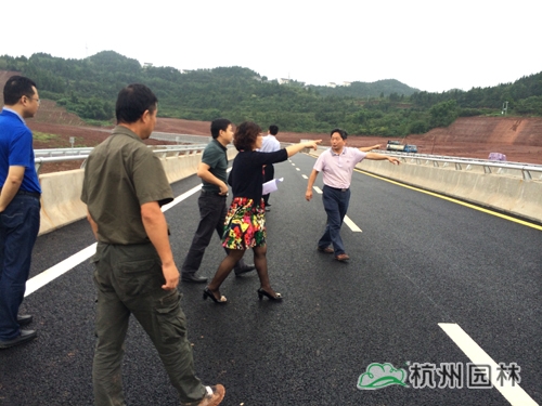 在工程現(xiàn)場,杭州市園林綠化股份有限公司現(xiàn)場技術(shù)負(fù)責(zé)人趙海耀對高速公路西入口的整體布署、設(shè)計理念及施工現(xiàn)狀做了詳細(xì)匯報。對于工程目前的進(jìn)展,史燚一行給予了肯定,同時,提出了對工程的要求和看法,希望在雙方的合作及共同努力下,工程能夠順利推進(jìn)并完美收工。