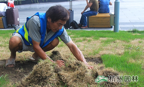 烈日下,他們在進行苗木養(yǎng)護工作,美景,離不開他們的辛苦付出