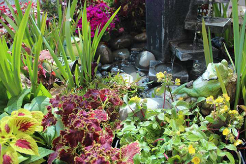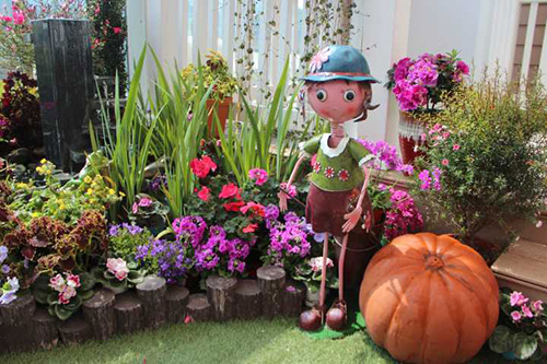 鵝卵石使溪水流淌更趨自然,美麗的鐵藝姑娘在花園中勞作。仔細(xì)看,旁邊還有青蛙王子樂隊的婉轉(zhuǎn)音樂。這些小細(xì)節(jié),增加了花境的趣味性。
