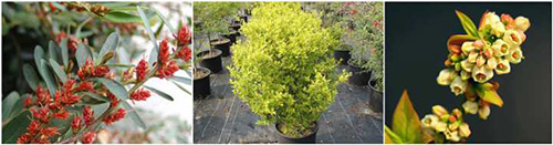 ▲從左至右:小葉蚊母、易豐女貞、藍莓
