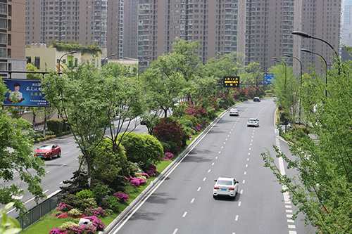 項目南起新業(yè)路,北至曇花庵路,全長約1750米,是集綠化、美化、文化等為一體的景觀大道,四季特色分明。春有日本早櫻、垂絲海棠等花滿枝頭;秋有銀杏、紅楓色彩明艷,更有桂花一路飄香;夏、冬時節(jié)風景又有不同。豐富的植物配置、色彩鮮艷的草花、文化氣息濃郁的小品……使得這條道路開闊大氣,充滿生機。