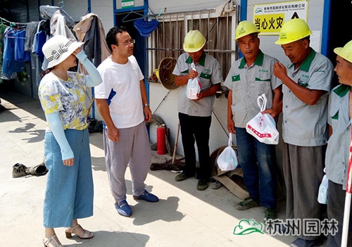 7月20日至28日,杭州市園林綠化股份有限公司的夏季高溫防暑慰問工作也陸續(xù)進(jìn)行,工會領(lǐng)導(dǎo)和各有關(guān)部門負(fù)責(zé)人帶著防暑降溫物品,奔赴各大在建項目工地,為一線施工人員帶去全體員工的關(guān)心和慰問。