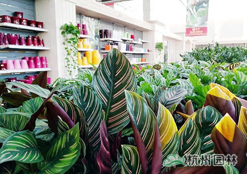 雙線竹芋:墨綠的葉片上,是成雙成對的桃紅色線紋,非常獨特,用來布置臥室、客廳、辦公室等場所,顯得安靜、莊重,可供較長期欣賞。