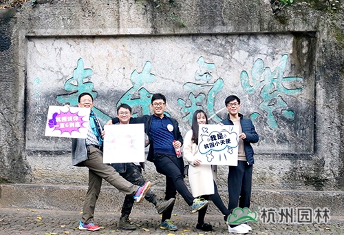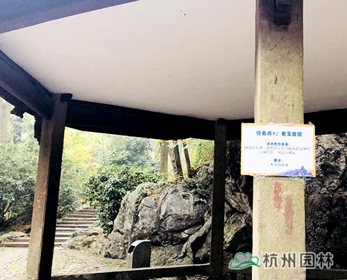 第二個任務點在紫氣東來石碑。大家在紫氣東來石碑前的平臺區(qū)域用“杭州園林”的元素進行合影、點贊,即可蓋章過關(guān)。紫氣東來石碑是玉皇山的標志性位置,大家在這里合影留念,成為“杭園小天使”,“為杭園打call”,玩的不亦樂乎。