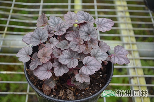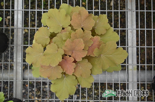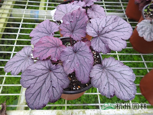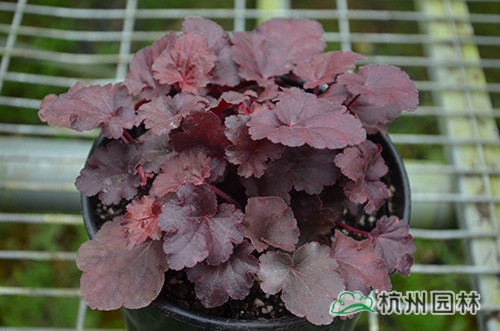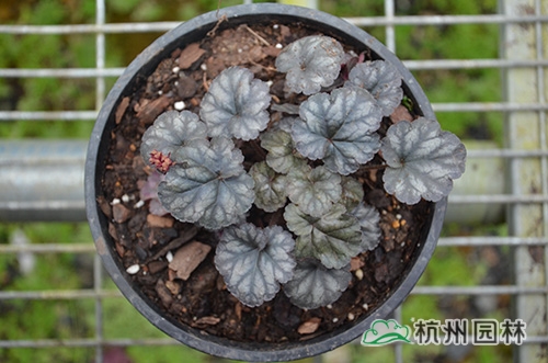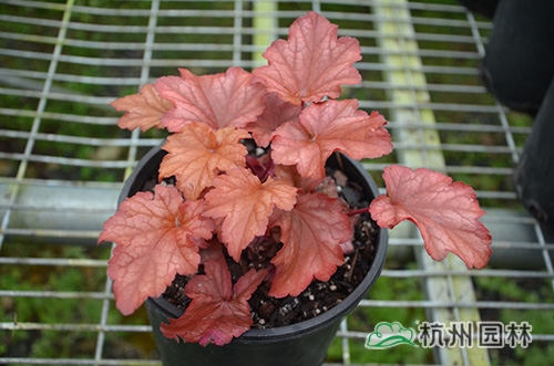 礬根又名小花腎形草,英文名為“Alum root”(因根部不規(guī)則膨脹而來),因此在引入中國的時候被翻譯成了“礬根”。礬根葉色繁多,且葉色會隨著季節(jié)、環(huán)境、溫度和光照條件的變化而改變。例如,‘蜜桃黃’在春天的時候,葉子展現(xiàn)出細(xì)膩的銀色光澤,成熟的葉片顏色會呈現(xiàn)紫色并略帶玫瑰紅;‘赤砂巖紅’的葉色會從桃紅色變?yōu)榱零~黃色,再變?yōu)榫G色帶有琥珀色;‘貴族紫’葉子的顏色會保持穩(wěn)定的紫色,冬天的葉子會變成銀色。
