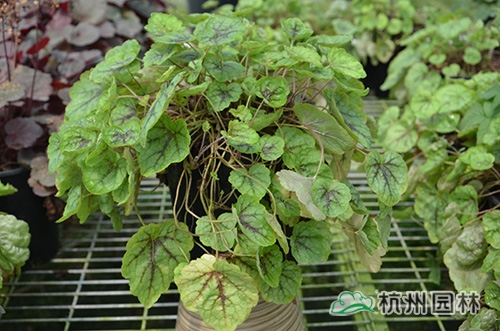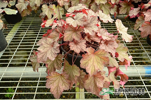 礬根葉形也變化多樣,基部心形或楔形,掌狀淺裂至深裂,邊緣波狀,淺根系,葉基生,花期一般為4~10月,花很小,呈鐘狀,兩邊對稱。幼苗長勢緩慢,成苗后生長旺盛。綠期長,能夠在-15℃以上的溫度下生長。具有喜半蔭、耐全光、耐旱性和耐寒性強等生理特點。適宜富含腐殖質(zhì)的土壤。喜中性偏酸,適宜的PH值為5.8~6.2,能夠在傾斜地方生長。冬季不落葉,枝葉生長稠密,株型圓整,覆蓋性強,花和葉都比較漂亮。