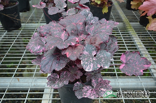 礬根Heuchera micrantha,虎耳草科礬根屬,多年生耐寒草本花卉,原產(chǎn)于美國中部,是少有的彩葉陰生地被植物,被廣泛應(yīng)用于美國園林景觀中。近年來,在國內(nèi),作為新優(yōu)地被植物,礬根因其美麗的葉色和獨特的葉形,良好的觀賞性和景觀效果,成為熱門園林植物之一,有著廣闊的應(yīng)用前景。