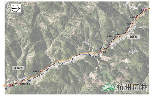 本次設(shè)計(jì)范圍為Y503鄉(xiāng)道(毛家村--裊溪村段)沿線的景觀改造提升,長度約為3公里。改造提升內(nèi)容主要為道路沿線兩側(cè)的建筑立面整治、荒地覆綠、花壇整治、護(hù)坡?lián)鯄κ崂砀隆⑿略鱿吰脚_(tái)、老橋修復(fù)、廣場(chǎng)整治等。