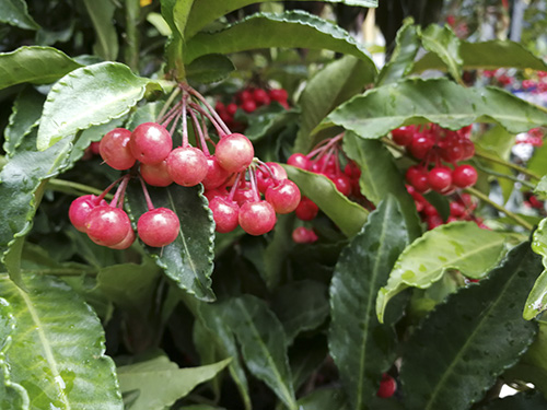 硃砂根的紅果期6個月以上,且株型優(yōu)美,四季常青,紅果艷麗,圓滑晶瑩,與綠葉形成強烈對比,鮮艷奪目,火紅果實給人以溫馨、熱情的美感,增添了喜慶、富貴的氣氛,觀賞性極強,是優(yōu)良的觀果觀葉花卉。