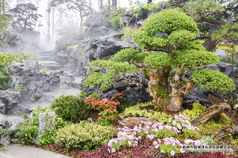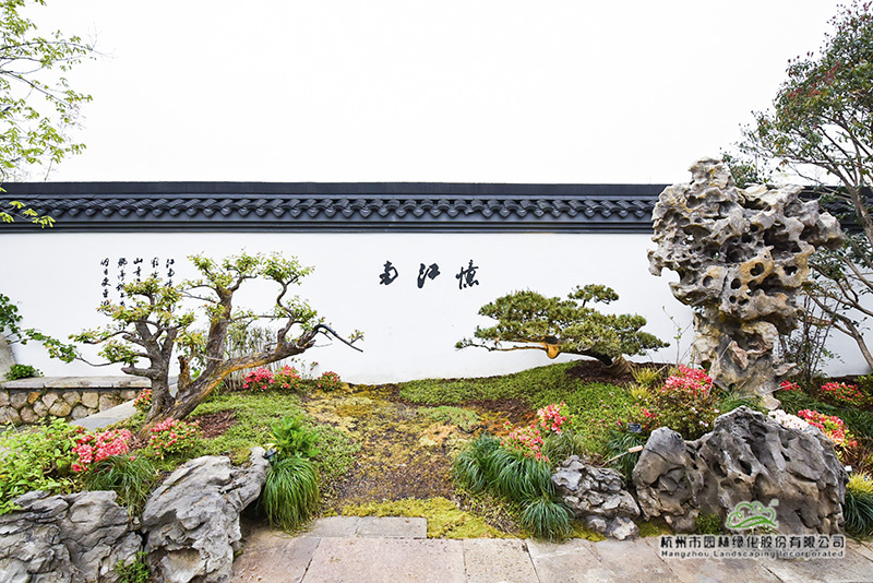 再往里走,富春山居照壁前的造型黑松和紅花檵木,一左一右,遙相呼應(yīng),樹(shù)姿優(yōu)美,枝干舒展,仿佛熱情歡迎遠(yuǎn)道而來(lái)的客人。這兩棵樹(shù),是深化設(shè)計(jì)團(tuán)隊(duì)跑遍全國(guó)重要苗圃挑選回來(lái)的,讓最美的一面呈現(xiàn)在游客面前。