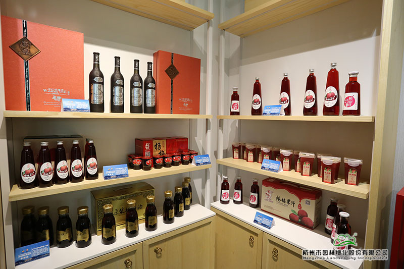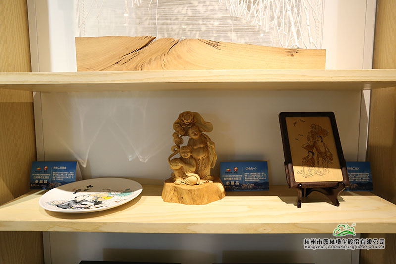 負(fù)一層展廳內(nèi),不僅循環(huán)播放著臺州城市形象、旅游景區(qū)、山海風(fēng)光、生態(tài)文明建設(shè)、“兩山”理論成果的宣傳片,還展示了臺州特色的茶葉、烏藥黃精、楊梅制品、無患子系列產(chǎn)品、木竹工藝品等特色林產(chǎn)品。