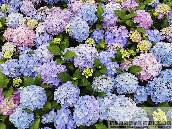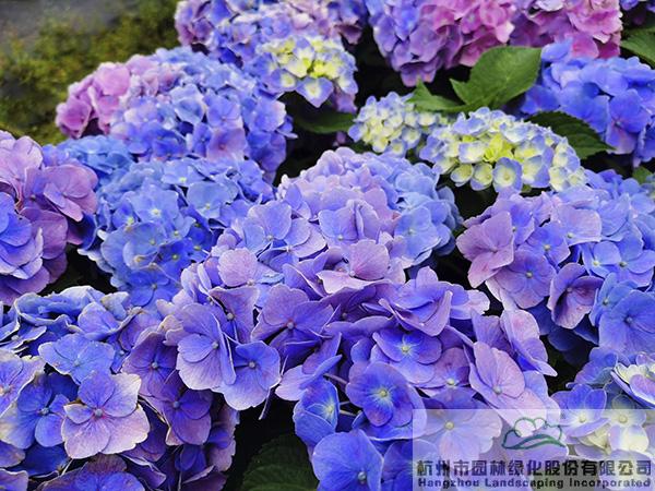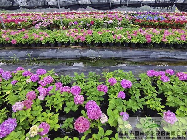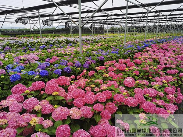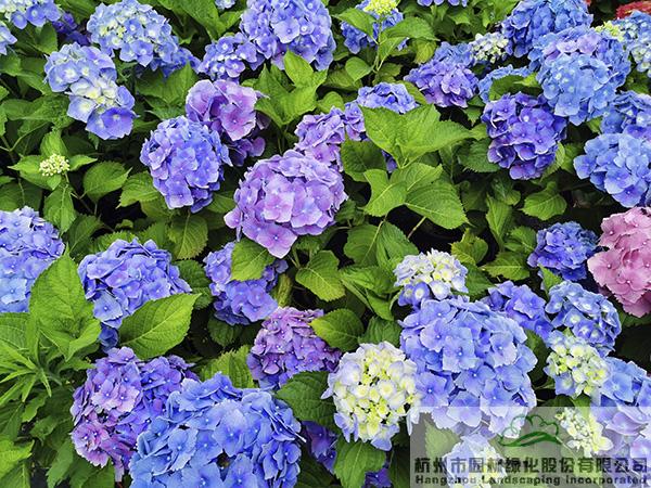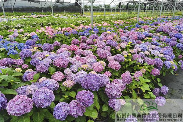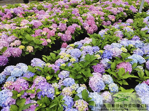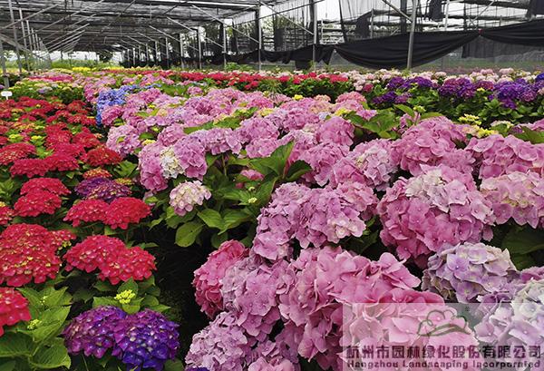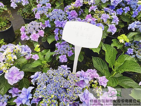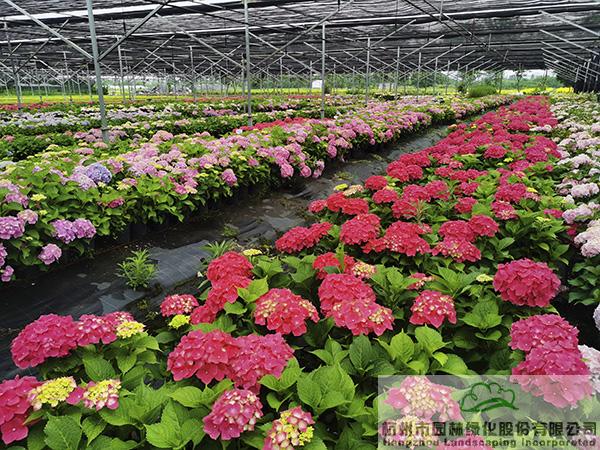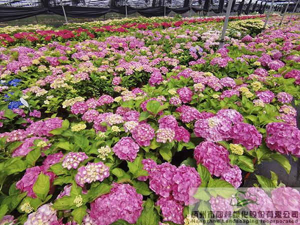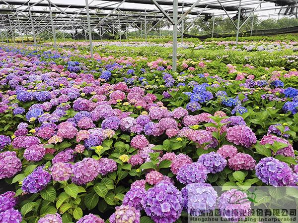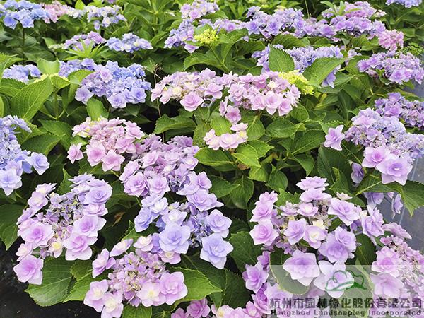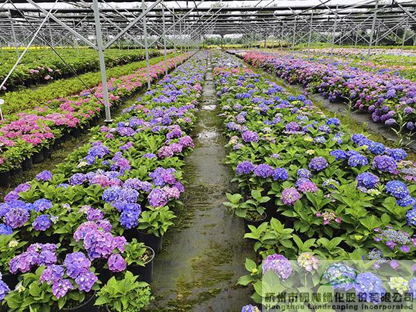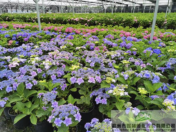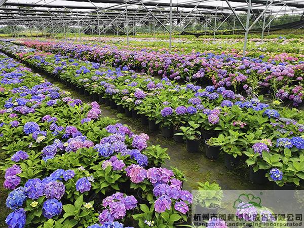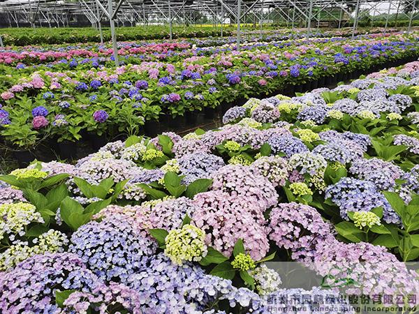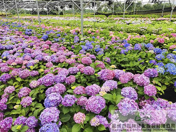據(jù)悉,在畫境種業(yè)徑山基地,共有七八十個繡球品種,規(guī)格從1加侖到5加侖,能夠滿足家庭園藝和工程用苗的多種需求。通過近幾年的生產(chǎn)和繁育,徑山基地不斷篩選優(yōu)良的繡球品種,目前,基地里的這些品種表現(xiàn)都比較好,比如紅色系的搖擺樂、漢堡、花神,花色紅艷,花朵碩大,在一眾繡球中表現(xiàn)非常搶眼;花色豐富多變、宛如一顆顆璀璨寶石的藍寶石和藍色媽媽;花朵宛如蝴蝶翩躚、花色充滿夢幻感的佳澄;花朵密集、猶如一大捧五顏六色爆米花的愛莎;開花早、花期長、花色漸變的藍色海洋;花開時,宛如一只只白色小鳥在枝頭紛飛的泉鳥;花團錦簇、花期超長的無盡夏……可以說,每一種繡球的花色、花形都各不相同,極具特色,充滿了夏日的浪漫情懷。