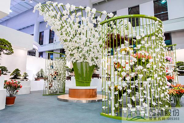 館內(nèi)用大量的白色蝴蝶蘭花朵和仿竹構(gòu)筑物打造的立體景觀,在展示浙江竹產(chǎn)業(yè)發(fā)展的同時(shí),更展現(xiàn)了“綠水青山就是金山銀山”理念在浙江的生動實(shí)踐。