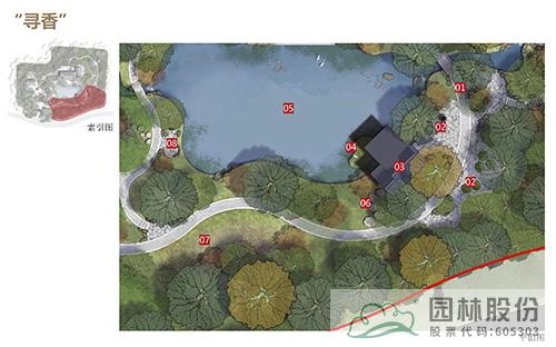 “尋香”片區(qū):圍繞西湖的“桂香、茶香”元素,以湖畔邊的樾香亭為主景展開,與茶藝小品、花境、小徑等元素結合,打造視覺、聽覺、觸覺等沉浸式景觀,形成繽紛的五感花園。