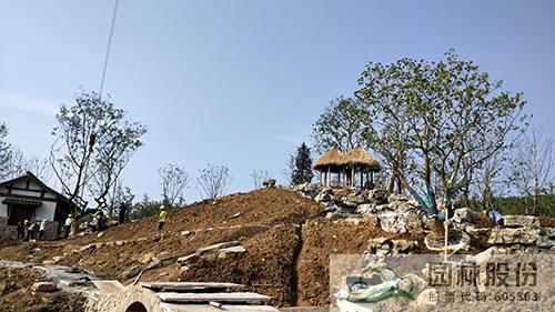 自今年四月份開工以來,杭州園的各項工作進展有序。截止目前,主體建筑、水系跌瀑、溪流假山等基本完工,大部分鋪裝已經完成,展園景觀風貌初見雛形。接下來主要進行喬木和大灌木的種植工作。正值夏季高溫時節(jié),為提高樹木的成活率,施工中多措并舉,提前將挑好的大樹進行修剪、斷根、噴灑營養(yǎng)液;采用通氣透水的材料包裹土球,進行容器假植;制定精細澆水養(yǎng)護方案等,使植物清涼度夏,早日綻放風華。