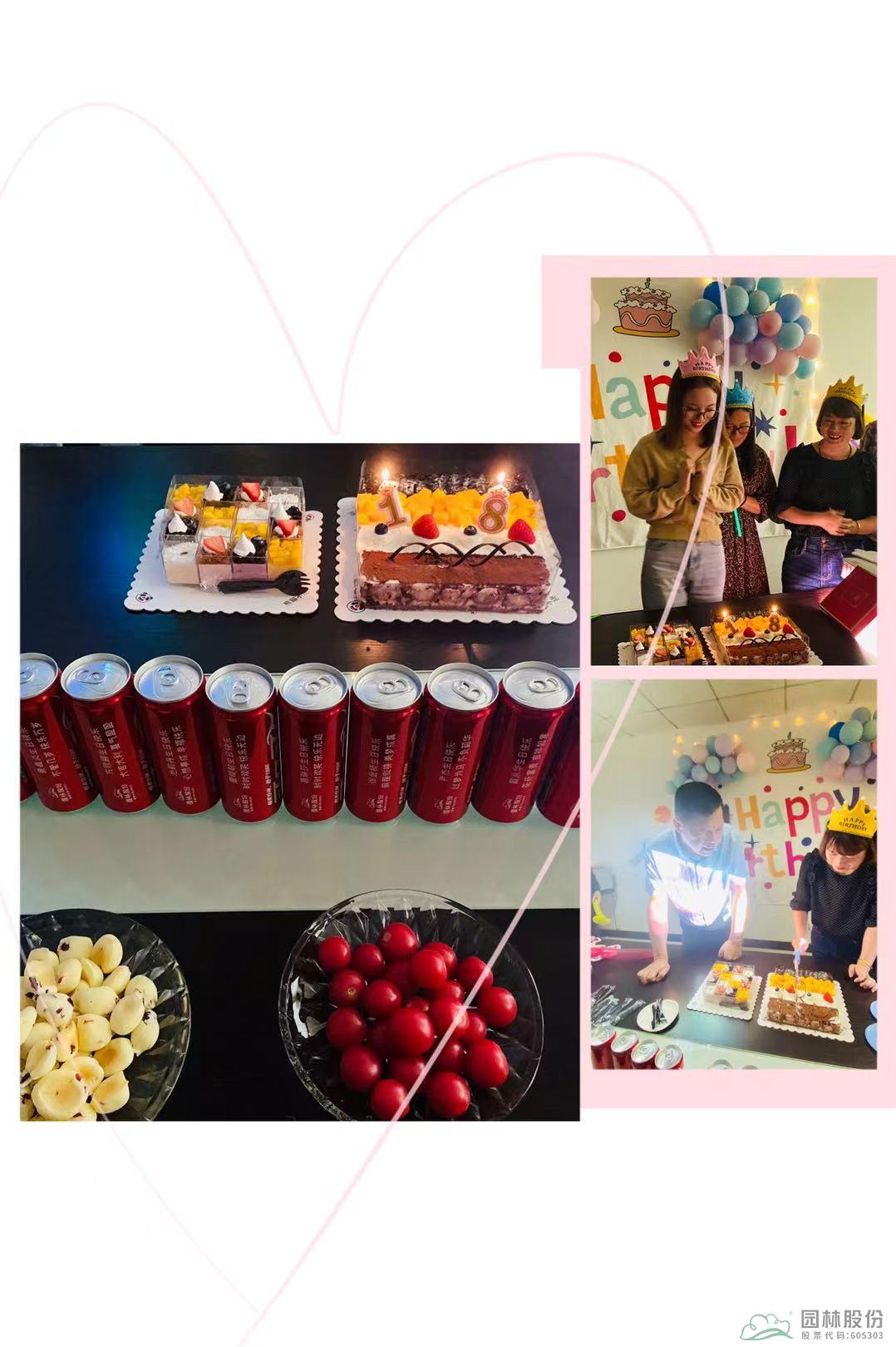 公司將以不同的形式每月組織集體生日會(huì),通過(guò)多樣性的活動(dòng),增進(jìn)員工友誼、營(yíng)造溫暖的大家庭,每一位園林股份的家人們都會(huì)在生日當(dāng)月受到邀請(qǐng),讓我們盡情期待后續(xù)的活動(dòng)和驚喜吧。