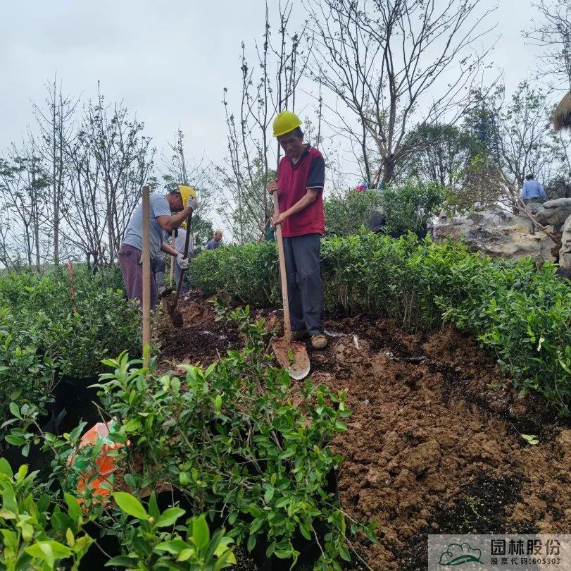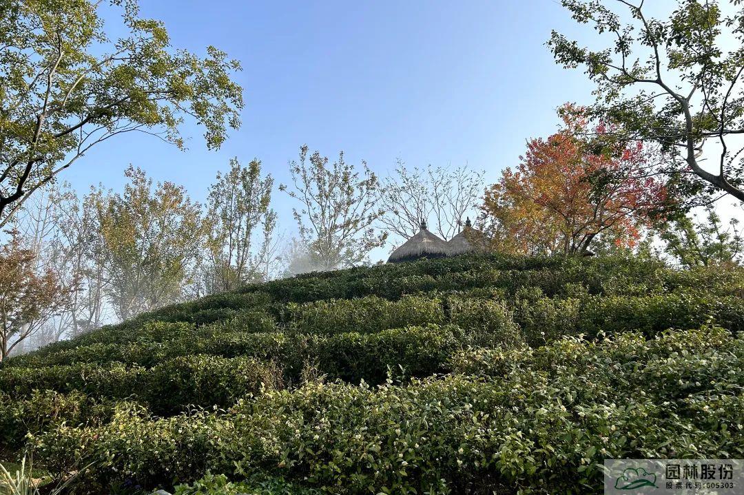 這其中運(yùn)用到了茶樹(shù)地轉(zhuǎn)容的管理技術(shù)和大型苗木的土球加固技術(shù),為保證茶山景觀效果完美呈現(xiàn),技術(shù)人員采取了一系列措施,包括開(kāi)挖前先修剪嫩芽、噴施蒸騰抑制劑以及根據(jù)季節(jié)變化采取相應(yīng)遮陽(yáng)、施肥、預(yù)防病蟲(chóng)害等相應(yīng)措施,經(jīng)過(guò)幾個(gè)月的精細(xì)化養(yǎng)護(hù),最終達(dá)到“問(wèn)茶”片區(qū)的景觀效果。