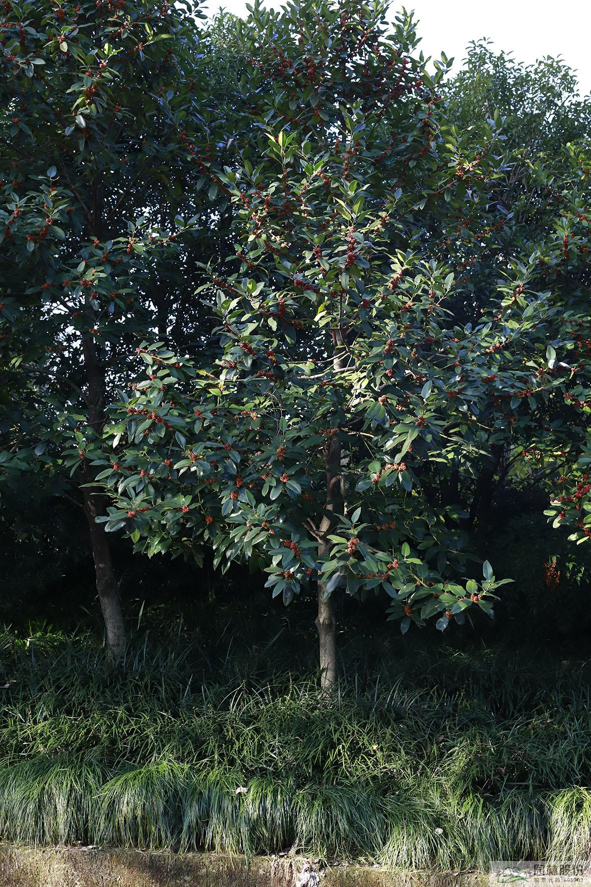 大葉冬青:樹形呈傘形,主干明顯;葉片長(zhǎng)圓形,葉緣具疏鋸齒,葉面深綠色具光澤,果成熟時(shí)紅色。大葉冬青的嫩葉也就是大名鼎鼎的苦丁茶。葉片揮發(fā)油具有抑菌功效,可應(yīng)用于工礦企業(yè)綠化,也適合園林孤植、列植,作行道樹,庭院樹等。