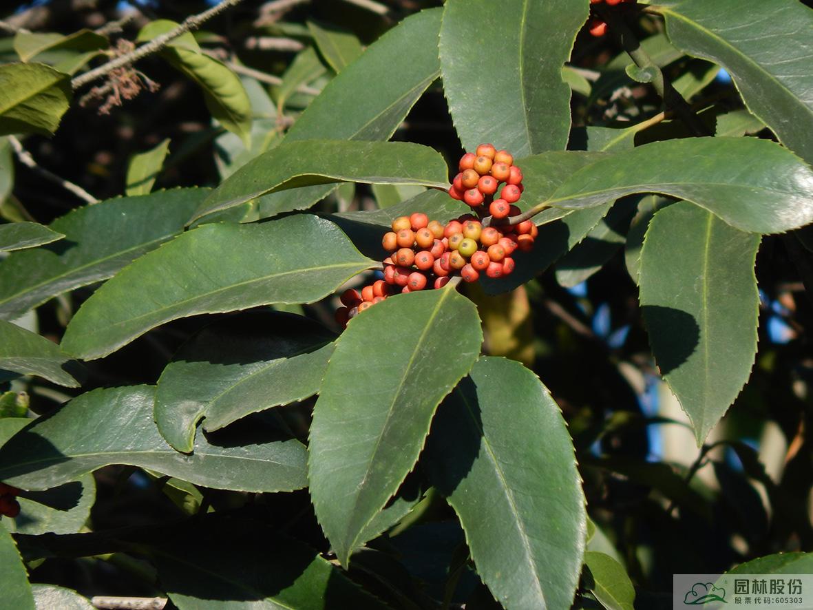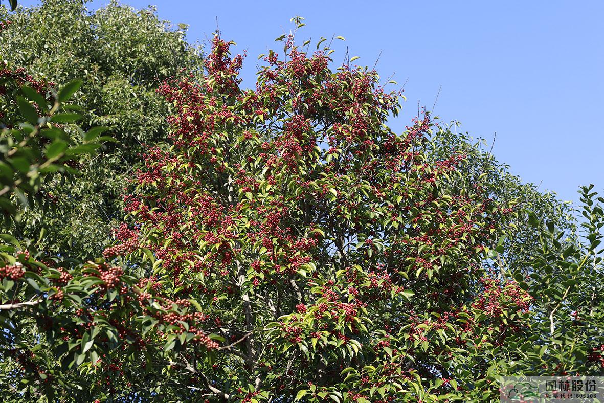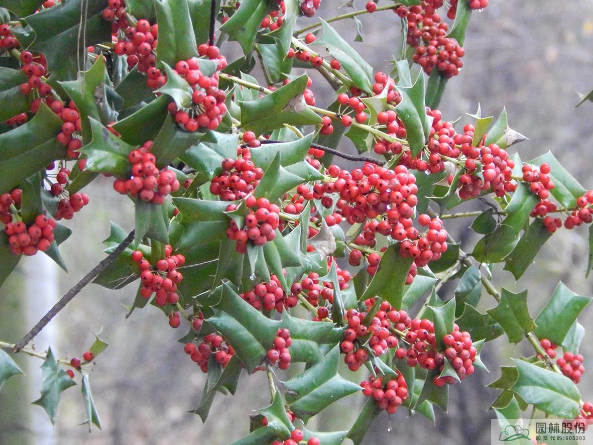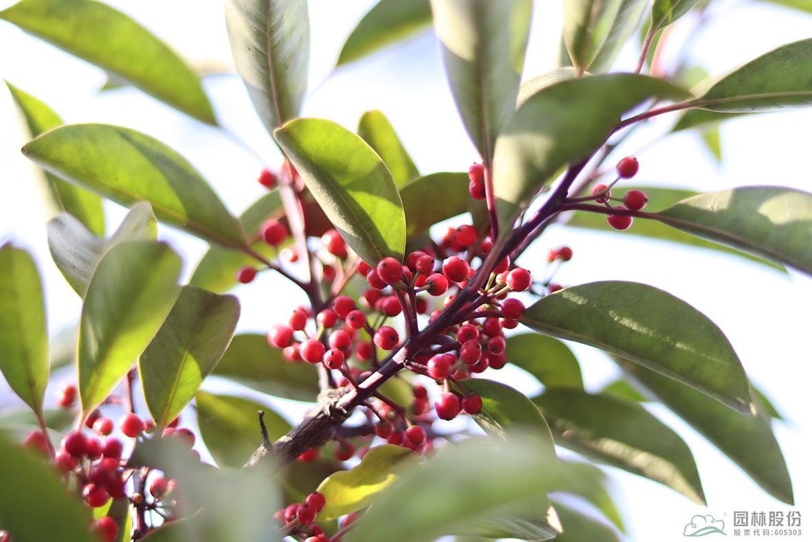 鐵冬青:其葉子四季常青,故名鐵冬青。為常綠喬木或灌木,高可達(dá)20米,葉全緣。果實(shí)紅色,紅若丹珠,小巧可人。掛果期長(zhǎng),能從10月一直持續(xù)至來年3月。因有多子多孫,興旺發(fā)達(dá)之意,在民間俗稱“萬子千紅樹”。樹皮或根皮為中藥“救必應(yīng)”,具清熱解毒,利濕的功效。為優(yōu)良觀果樹種,適宜在園林中孤植或群植。