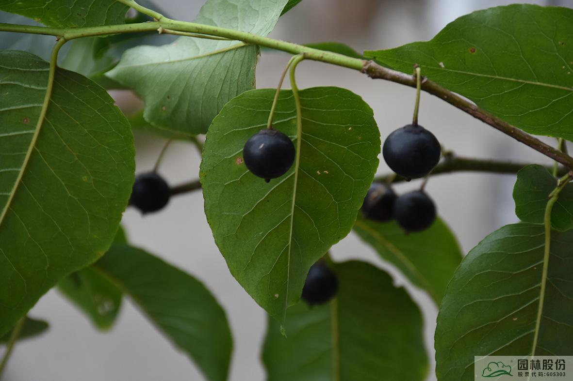 大果冬青:落葉喬木,樹體高大,分枝點(diǎn)高。葉片紙質(zhì)至堅(jiān)紙質(zhì),卵形或卵狀橢圓形?;ò咨揖叩南銡狻9墒鞎r(shí)黑色,球形。四季景觀分明,隨時(shí)間和空間變化呈現(xiàn)不同的姿態(tài),色彩和意境,常在園林景觀中孤植。