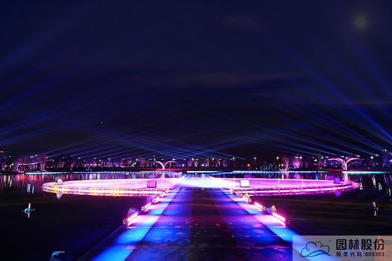 旨在打造成為川西最具規(guī)模、最具獨特創(chuàng)意的光影噴泉秀,結合現(xiàn)有水域,營造出清澈激靈動的特色。水秀的表演則以唯美靈動、色彩絢麗的表演配合水上透明舞臺上演員的輕歌曼舞,在空中光影形成的多彩穹頂?shù)沫h(huán)抱下,展示出一個美輪美奐的“天空之境”。結合本項目特殊的自然環(huán)境條件,如此有針對性的設計創(chuàng)意,有效解決了因大開闊的區(qū)域缺少高低層次,山體林木距離主秀區(qū)距離較遠帶來的暗夜壓迫感和孤寂感,實現(xiàn)了全視野、多層次的豐富絢麗夜游體驗。