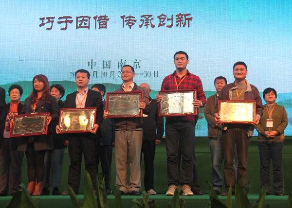 30日下午閉幕式的一個重要環(huán)節(jié)是為2011年度中國風景園林學會優(yōu)秀園林工程獎獲獎單位頒獎。由杭州市園林綠化工程有限公司承建的“昆明市市級黨政機關辦公用房搬遷建設項目區(qū)內景觀綠化工程(第三標段)”和“吳江市震澤鎮(zhèn)寶塔街西入口沿河、沿街北側、后花園仿古建筑工程”分別榮獲“中國風景園林學會優(yōu)秀園林綠化工程獎金獎”和“中國風景園林學會優(yōu)秀園林古建工程獎銀獎”。高總代表公司上臺領取了獎牌。