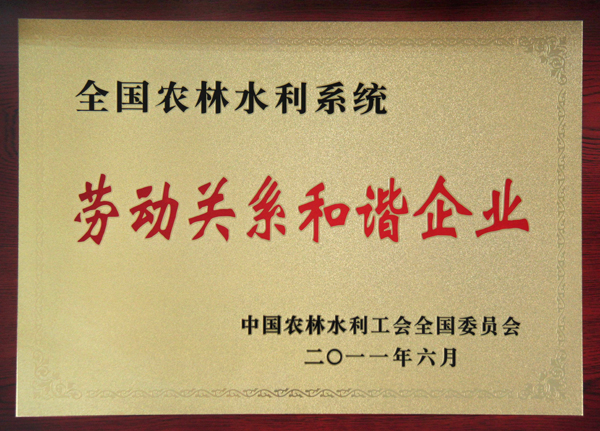 公司榮獲“全國(guó)農(nóng)林水利系統(tǒng)勞動(dòng)關(guān)系和諧企業(yè)”稱(chēng)號(hào)