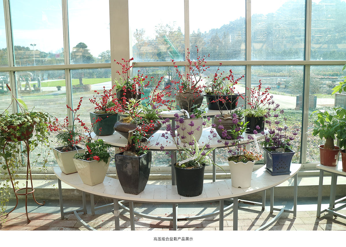 以容器育苗技術(shù)為基礎(chǔ),結(jié)合株型控制技術(shù)、高空壓條技術(shù)和花期調(diào)控技術(shù),對上百種園林植物進(jìn)行深度開發(fā),實現(xiàn)中大型植物小型化和多季開花的目的,有效提高了植物產(chǎn)品的附加值。