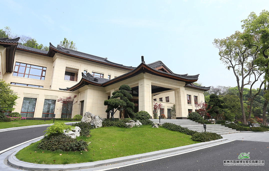 西湖山莊隨山勢(shì)而建,與西湖山水和諧相融,四周綠意盎然,風(fēng)景如畫(huà)。項(xiàng)目充分利用場(chǎng)地原生態(tài)的景觀(guān)特點(diǎn),依勢(shì)成景,因樹(shù)設(shè)景,文化為景,營(yíng)造出建筑隱、樹(shù)林茂、花卉雅、四時(shí)賞的景觀(guān)特色。筑以山勝,境因樹(shù)幽,曠奧有度,大氣大方,成就杭州秀美新景觀(guān)。